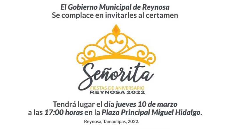 Reynosa, Tamaulipas.- El Gobierno de Reynosa, invita a las familias a participar y ser testigos del certamen de la coronación de la Señorita Fiestas de Aniversario 2022.