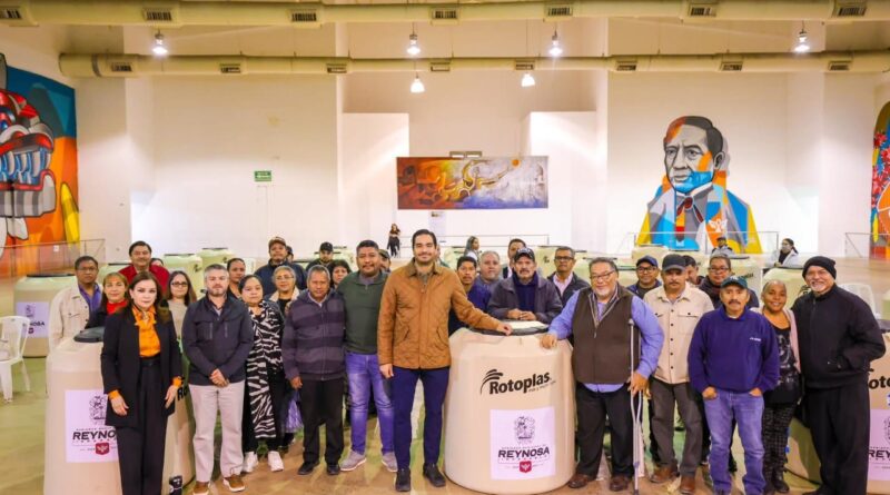 Reynosa, Tamaulipas.- Mediante un programa de apoyo a la comunidad, el Presidente Municipal Carlos Peña Ortiz, hizo entrega de gratuita de Tinacos, depósitos para el almacenamiento de agua potable, con la finalidad de mejorar la infraestructura hidráulica de centros de reunión a los que acuden ciudadanos en busca de apoyo espiritual, cumpliendo estos, una labor importante a favor de las familias vulnerables.