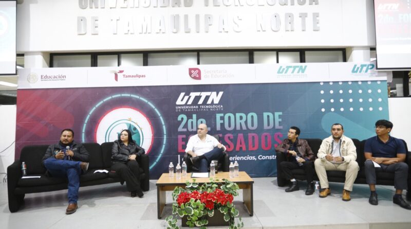 Reynosa, Tamaulipas. – Egresados de la Universidad Tecnológica de Tamaulipas Norte (UTTN), que dirige el rector Mtro. Edgar Garza Hernández, participaron en el “Segundo Foro de Egresados de la UTTN”, donde compartieron con estudiantes sus experiencias y trayectoria en el ámbito laboral.