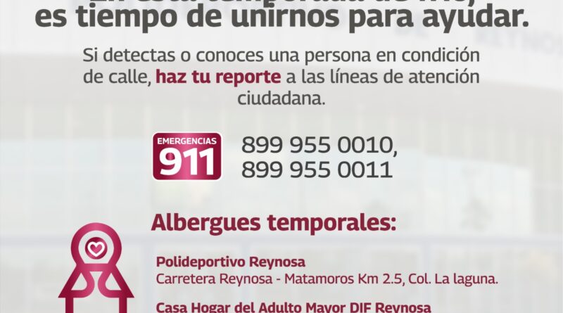 Si detectas a una persona en situación vulnerable ante las bajas temperaturas, repórtala a las líneas de atención de la Coordinación de Protección Civil y Bomberos, para que sea trasladado a un refugio temporal, 8999550010 y 8999550011 o al Número de Emergencia 911.