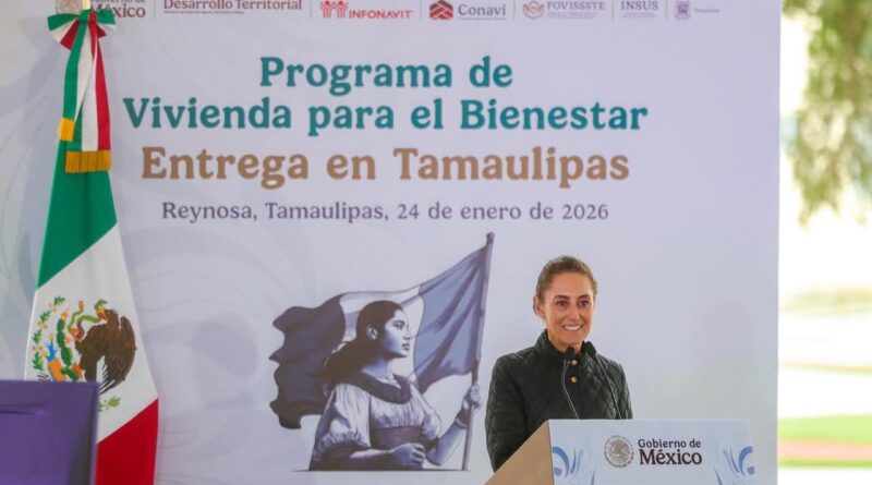 Reynosa, Tamaulipas.- «Me da mucho gusto estar hoy aquí en Reynosa, Tamaulipas, para entregar beneficios de los programas del Gobierno de la República. Agradezco la presencia del Gobernador Constitucional de Tamaulipas, Doctor Américo Villarreal Anaya, y del Presidente Municipal de Reynosa, Carlos Peña Ortiz», dijo la Presidenta al encabezar la entrega de beneficios de programas federales, de Vivienda del Bienestar y Pensión para Mujeres Bienestar.