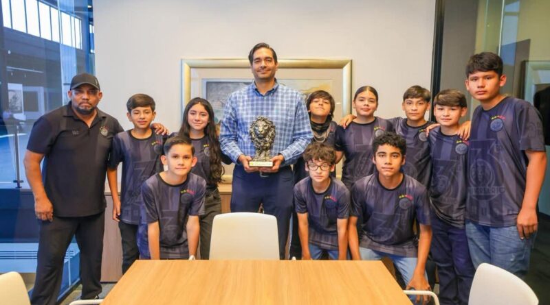 Reynosa, Tamaulipas.- El Presidente Municipal de Reynosa, Carlos Peña Ortiz, recibió a los integrantes del equipo infantil de futbol Leones Negros, destacando el orgullo que representa para la ciudad contar con niñas y niños que portan con pasión, disciplina y compromiso el nombre de Reynosa.
