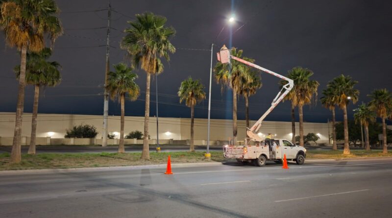 – Aplicación de pintura anticorrosiva gris en arbotantes de alumbrado público sobre bulevar Hidalgo con Libramiento a Monterrey.