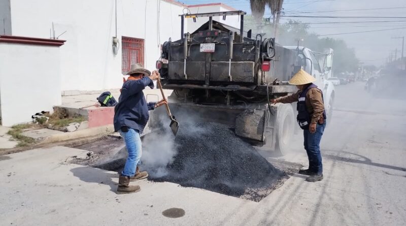 Reynosa, Tamaulipas.- Por instrucciones del Presidente Municipal Carlos Peña Ortiz, cuadrillas del R. Ayuntamiento de Reynosa rehabilitaron calles de las colonias 15 de Enero y Halcón, entre otras, como parte de la campaña permanente de bacheo y mantenimiento vial que se realiza en todas las colonias de la ciudad.